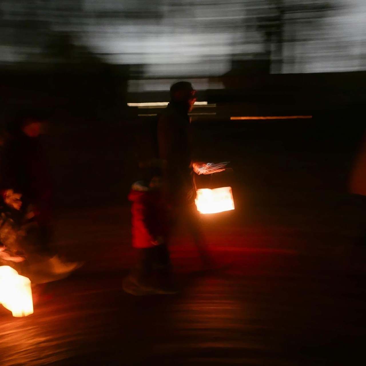 Vėjas vis stiprėjo ir vis garsiau ūžavo medžių viršūnėse. Tik staiga, stiprus vėjo šuoras, nešdamas snaiges, ir pakeldamas nuo žemės, jau parudavusius lapus, įsisuko į Nykštukės žibintą, ir užpūtė jį. Nykštukė su katinėliu liko visiškoje tamsoje. Nežinodami, kur toliau eiti, nuo vėjo pasislėpė už didžiulio medžio šaknies. Stipriai susiglaudę ėmė laukti, kas gi dabar bus. O kadangi buvo jau labai pavargę, ėmė abu ir užsnūdo.
