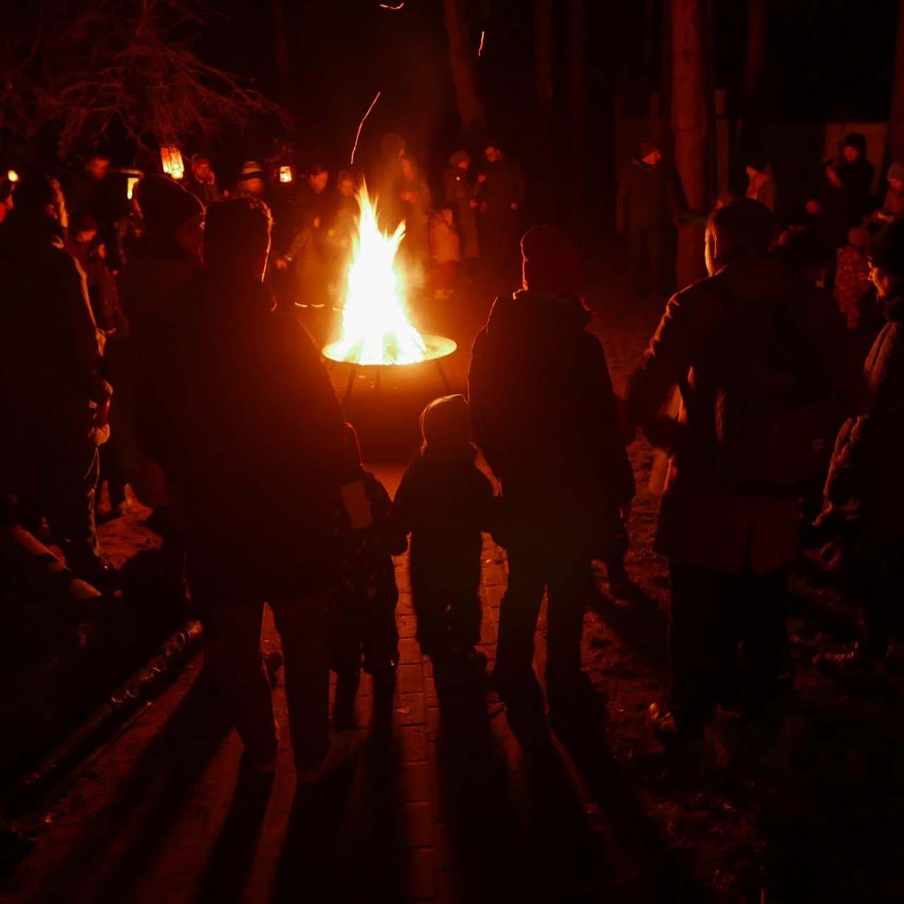 Tuo tarpu prisiartino ir kiti nykštukai. Katinėlis pasirąžė. Kaip visi nustebo, kai suprato, kad katinėlis susisukęs saugojo nuo vėjo Nykštukę Smilgę. Kiek daug džiaugsmo buvo visiems susitikus. Nykštukai uždegė Smilgės žibintą. Ir nutarė susitikimą atšvęsti čia pat. Jie susikūrė laužą, Nykštukė išdalino visiems savo vaišes ir dar ilgai jie ten buvo, kalbėjosi ir dainavo.